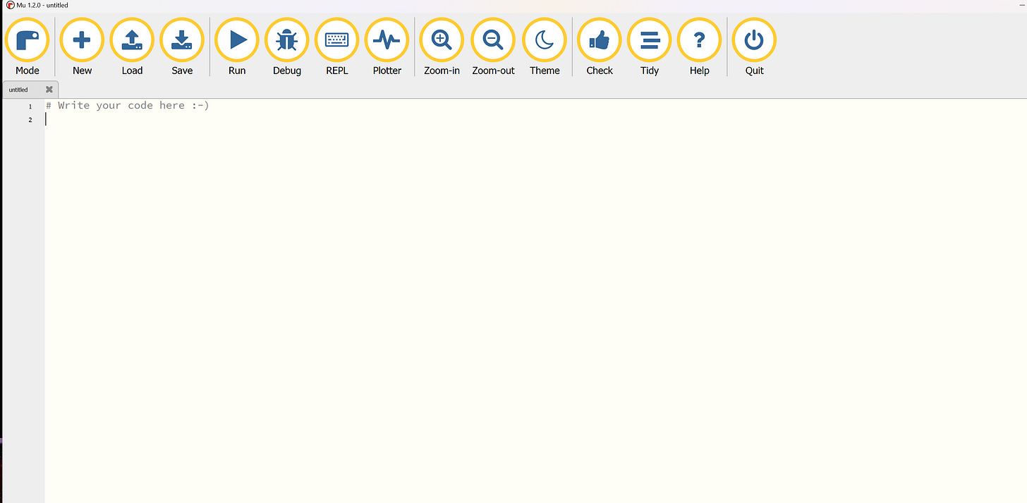 so to actually write the code, you use an IDE which believe it or not stands for Idiot. I started out using Visual Basic Code and then also got Visual Basic but then a book said a great beginner IDE was something called Mu. As a big KLF fan, I was, as it were, all bound for Mu Mu land.